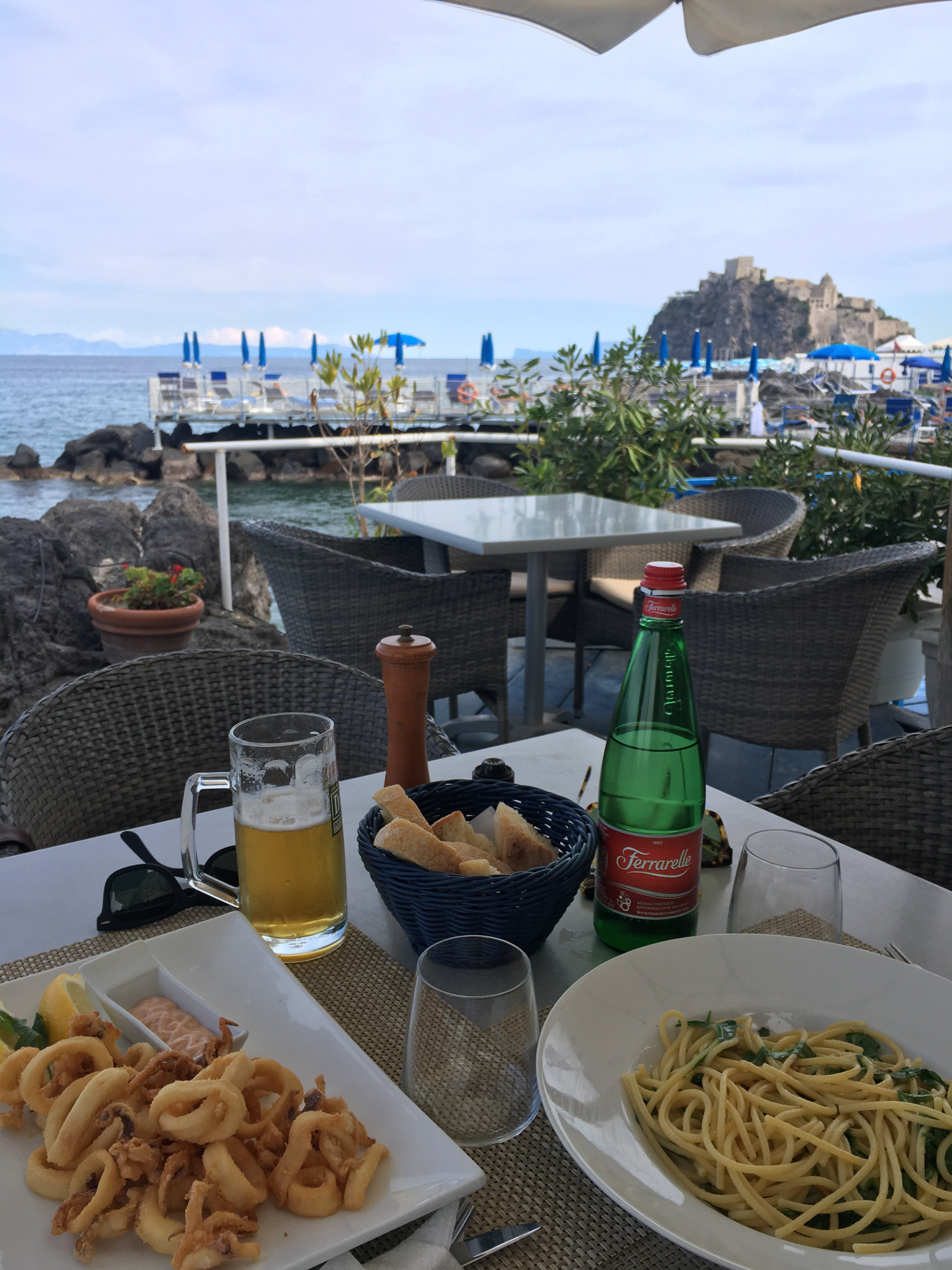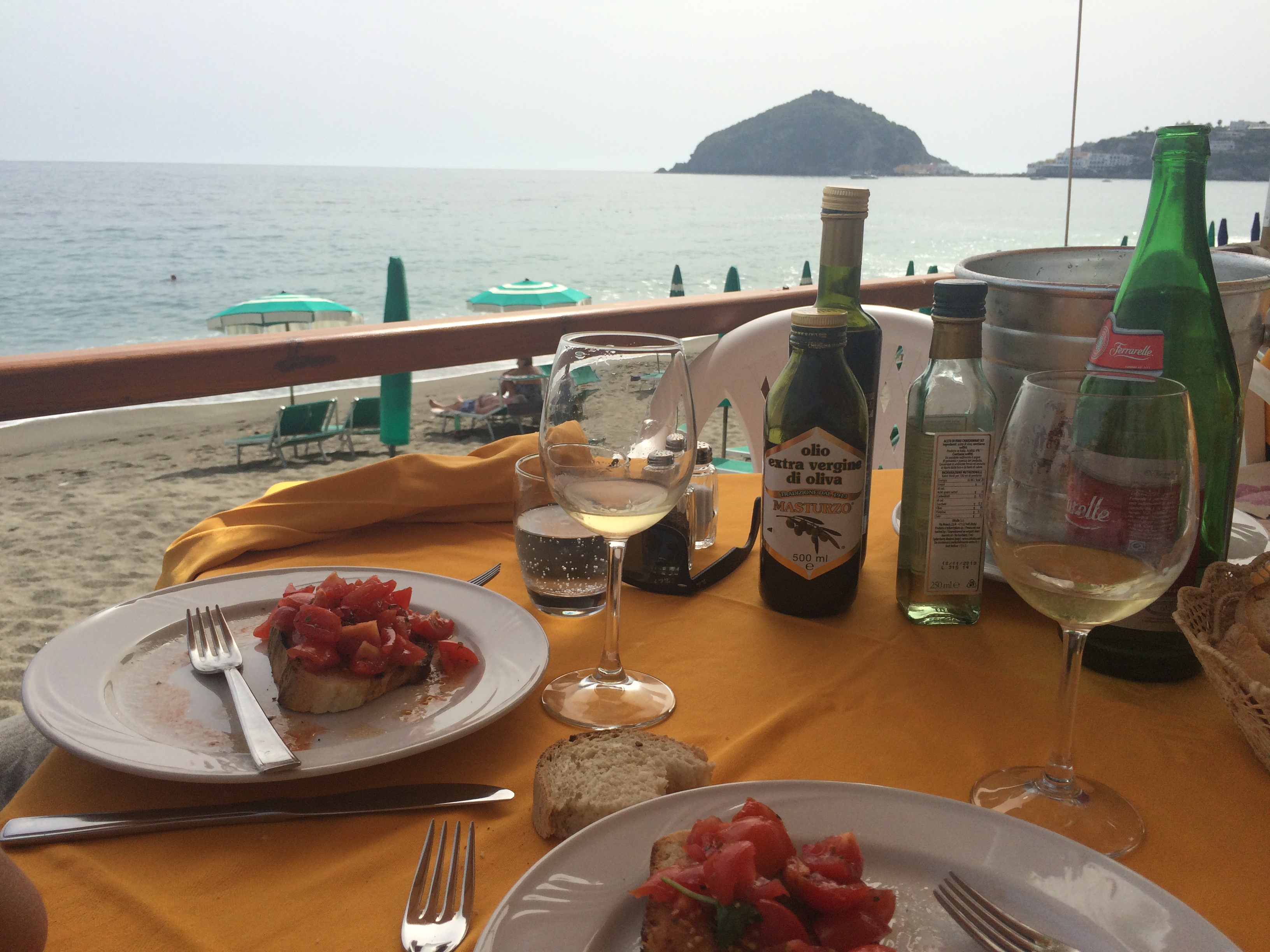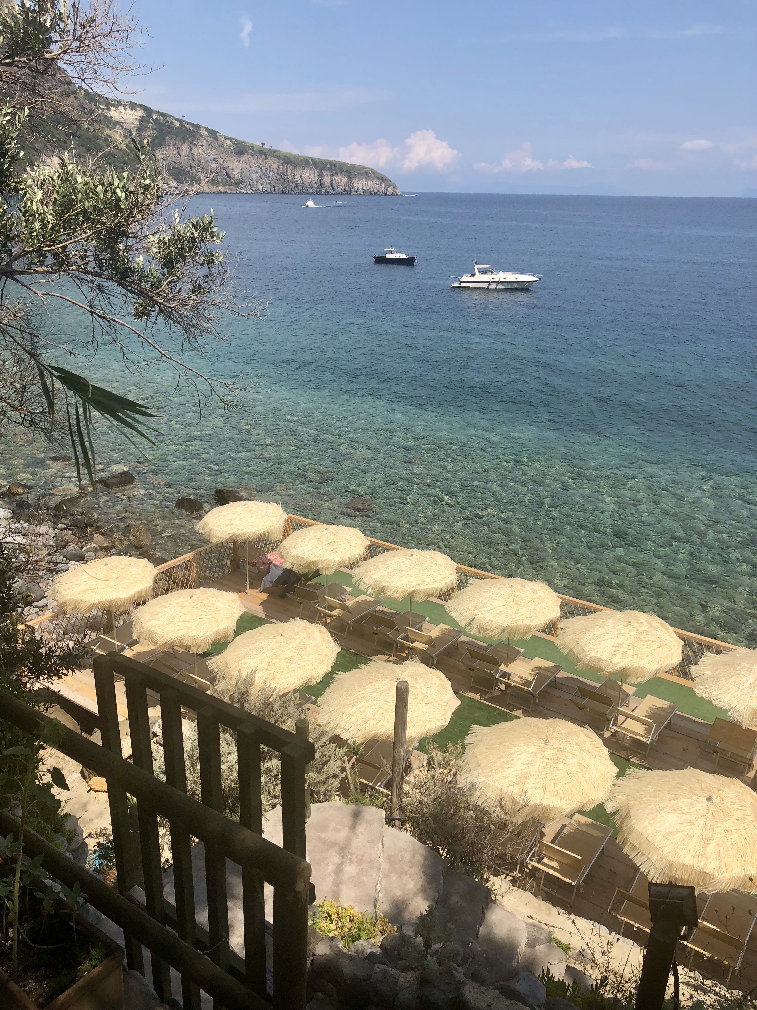 On the south side of the island. This is also really pretty and more of an elegant feel. They have nice restaurants and posh hotels over here and Maronti beach has nicer sand. You can do a beautiful walk on a path that wraps up and down all over Sant’ Angelo. There is an amazing restaurant in the Sant’ Angelo square to the left of the peninsula. Best pasta I have ever eaten, Dal Pescatore.