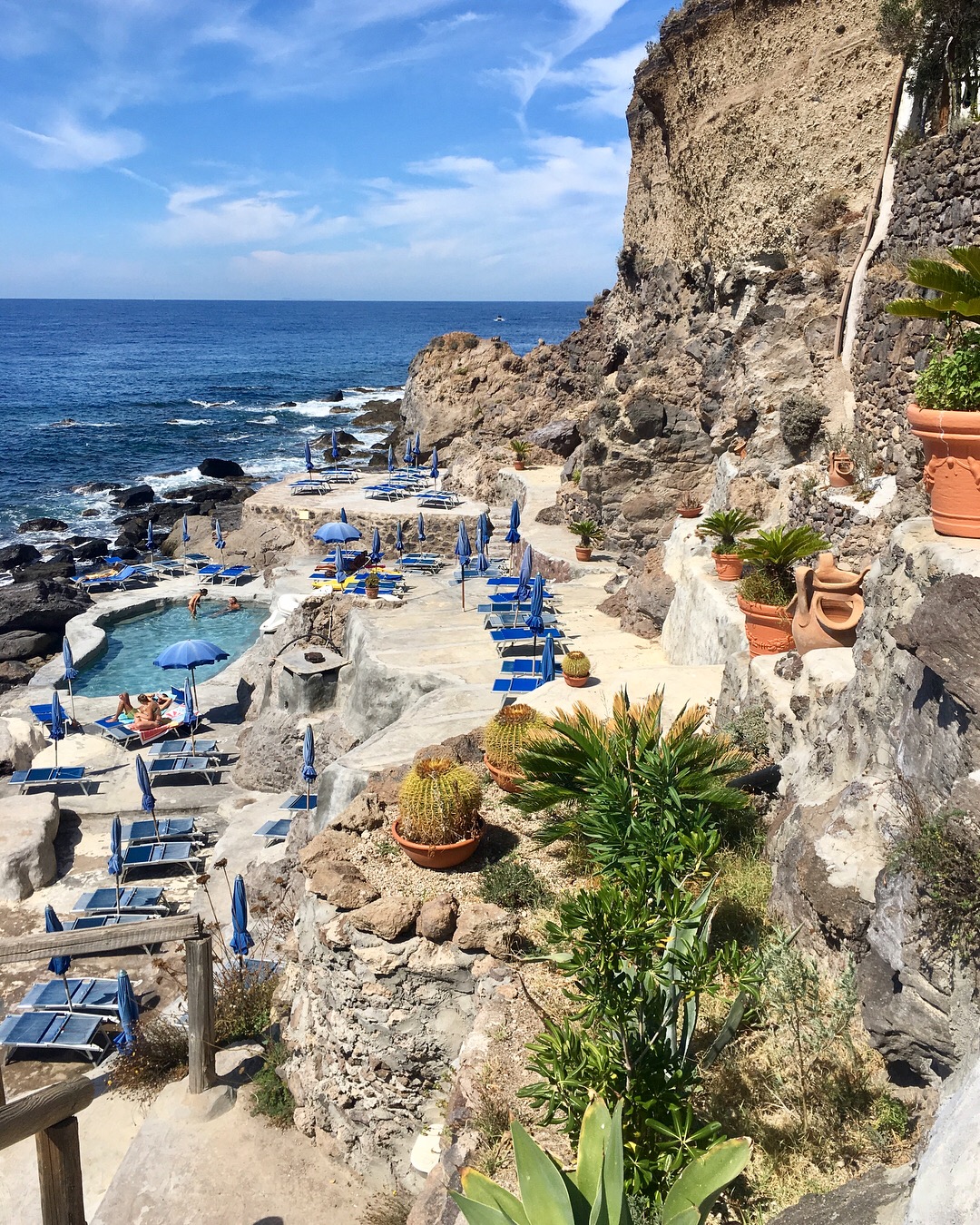 Scannella This place is worth the journey to get here. It’s in a remote part on the south side of the island. A hotel, beach club, restaurant and thermal. It’s photogenically the best place on the island. I would suggest to go for the day to the beach club and have lunch. Like most of the others, it’s easiest to get there by boat if you have one, but this one you can drive or take a taxi to.